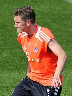 Ба́стиан Шва́йнштайгер (нем. Bastian Schweinsteiger, немецкое произношение: [ˈbasti̯an ˈʃvaɪ̯nʃtaɪ̯ɡɐ] о файле; род. 1 августа 1984, Кольбермор, Бавария) — немецкий футболист, выступавший на позиции полузащитника. Считается одним из лучших немецких игроков в истории на своей позиции[5][6][7]. Включён в Зал славы клуба «Бавария»[8].