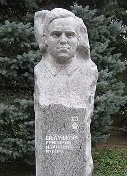 - ↑ Живой Журнал инфо. В Житомире со второй попытки снесли памятник Григорию Шелушкову. ФОТО. zhzh.info. Дата обращения: 1 июля 2022. Архивировано 26 декабря 2019 года.