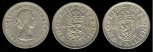 Во времена правления Георга VI и Елизаветы II выпускали два различных типа шиллинга, различавшиеся реверсами: в английском и шотландском варианте. В 1949 году с монеты исчезли слова IND. IMP. — после того как Индия провозгласила независимость.