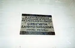 - В селе Яхники Лохвицкого района Полтавской области на здании сельского совета есть мемориальная доска.