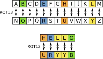 Современным примером шифра Цезаря является ROT13. Он сдвигает каждый символ английского алфавита на 13 позиций. Используется в интернет-форумах, как средство для сокрытия спойлеров, основных мыслей, решений загадок и оскорбительных материалов от случайного взгляда.[14]