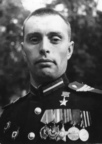 - ↑ В наградных документах отчество указано ошибочно как «Алексеевич».