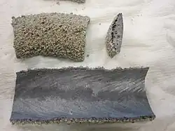 Сварочный шлак — стекловидный материал, получаемый как побочный продукт, выделяемый при процессах дуговой сварки, особенно экранированной дуговой сварки металла (также известной как ручная дуговая сварка), при сварке под флюсом и порошковой дуговой сварке. Шлак образуется, когда поток сплошного защитного материала, используемого в процессе сварки, плавится в верхней части зоны сварного шва. Сварочный шлак - это застывшая часть оставшегося флюса, охлажденного после сварки[1].