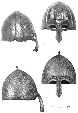 - ↑ Петров Ю. Ю. Древнерусские шлемы с полумасками.// Памятники старины. Концепции. Открытия. Версии. Т. II, СПб. 1997, с. 139, 142.