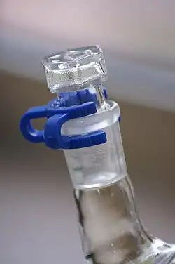 Чтобы шлиф не разобрался самопроизвольно во время реакции, используют различные зажимы, пластиковые и металлические, которые таким образом предотвращают аварии установок и травмы.