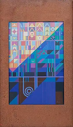 1965-67 Schulhaus Gutschick, Винтертур (ZH)[13] — 1965, сад символов, дубовые рельефы (атриум — первый этаж), 1967 настенная роспись (внешний вход)