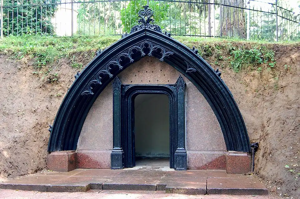Графиня Варвара Петровна Шувалова, вдова графа Павла Андреевича, после смерти своего второго мужа, французского графа Адольфа Полье, решила увековечить его память, попросив архитектора А. П. Брюллова разработать проект храма и склепа для упокоения праха супруга.