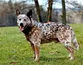 Под пятнистостью, или пёстрым окрасом, понимаются темные (эумеланиновые) пятна различной формы на более светлом (осветлённом, седом) основном фоне[37]. Разновидностью пёстрого окраса является мраморный окрас[37], хотя он и определяется особым геном.