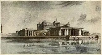 Общий вид зданий АН СССР на Крымской набережной, проект 1939 года[236]