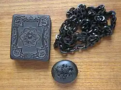 - Эбониты также использовались как заменители дорогих материалов наподобие чёрного дерева, слоновой кости, рога или черепашьего панциря.