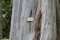 Кора ствола и ветвей гладкая, беловато-серая или голубоватая, глубоко бороздчатая, с отслаивающимся наружным слоем, из-за чего на ветвях и в верхней части ствола всегда висят остатки старой коры.