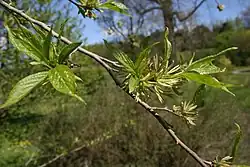 Листопадные деревья высотой до 20 м с яйцевидной кроной. Побеги с редким опушением, золотисто-коричневые, покрытые восковым налётом. Кора коричневато-серая с удлинёнными чечевичками, на старых стволах продольно-трещиноватая. Корневая система поверхностная, главная масса корневых мочек располагается на глубине около 30 см.