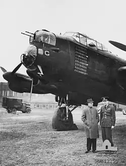 Эдвардс с Джоном Кэртином у самолёта «G for George», 1944 год