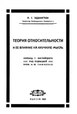 - Эддингтон А. С. Теория относительности и её влияние на научную мысль. — Одесса: Матезис, 1923. — 56 с.