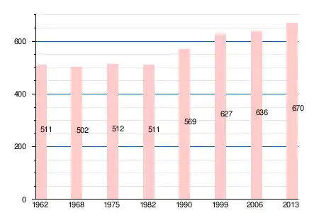 Население коммуны в 2011 году составляло 643 человека[6], в 2012 году — 657 человек[7], а в 2013-м — 670 человек[5].