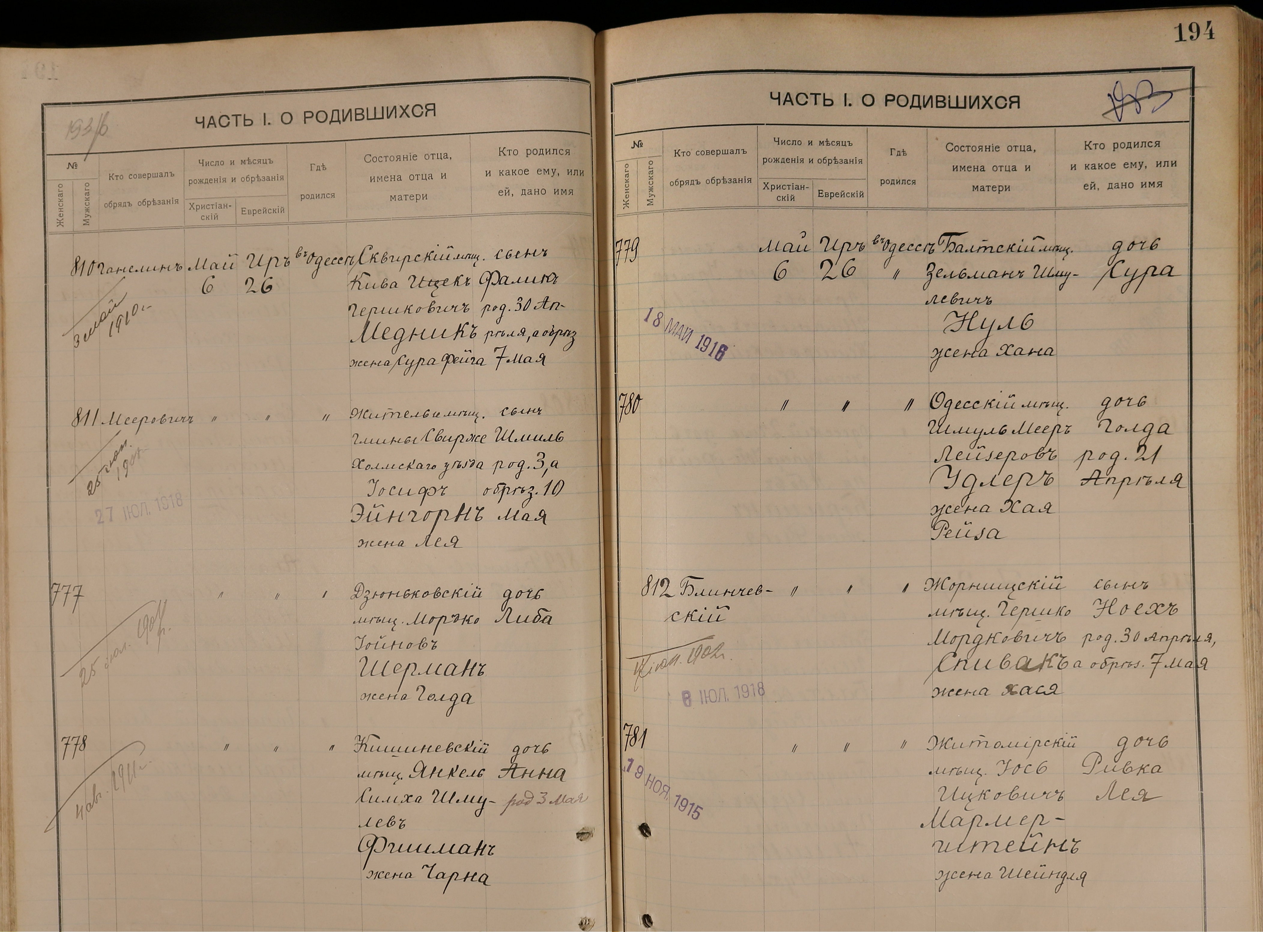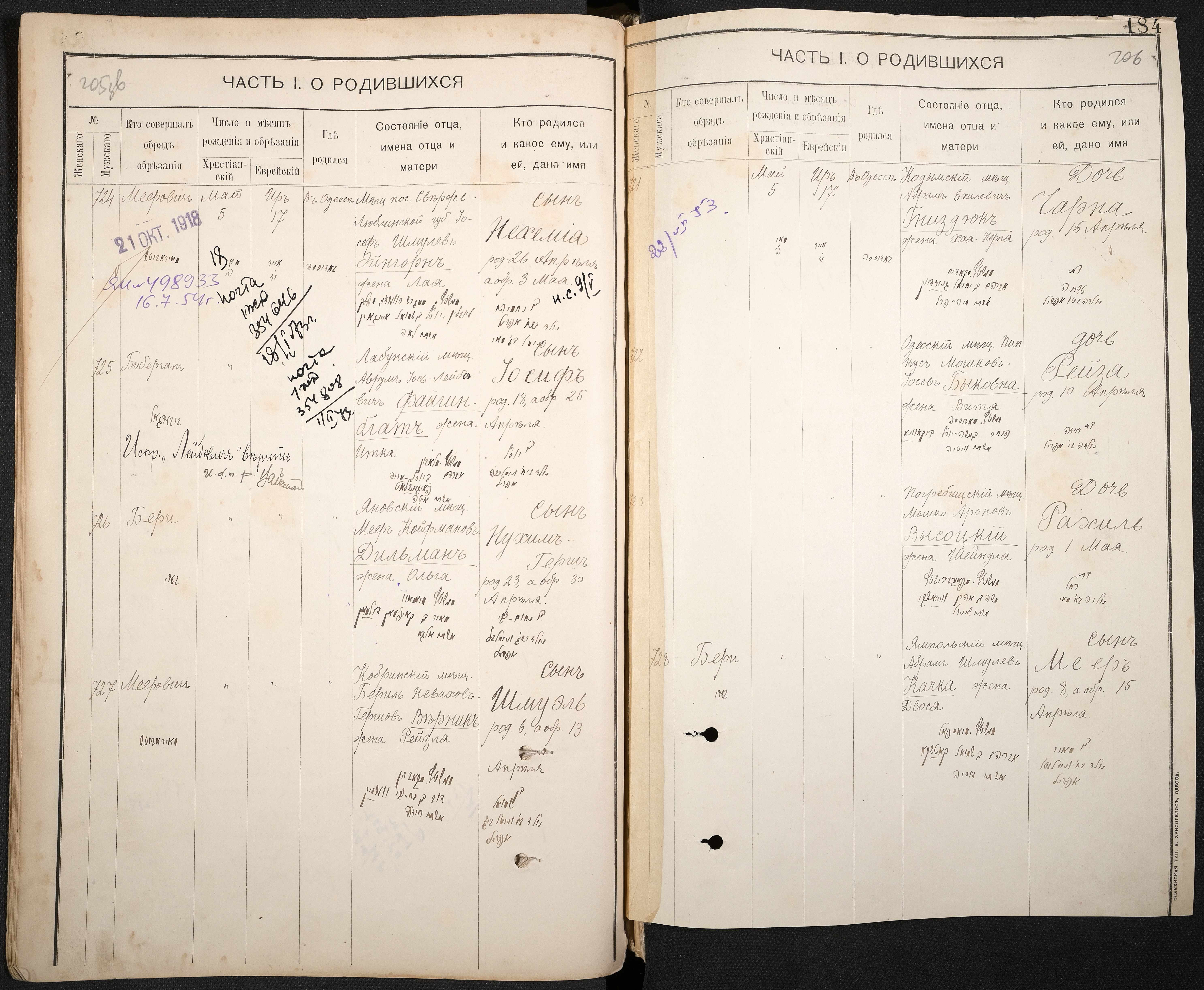 - ↑ Запись о бракосочетании родителей в канцелярии одесского городского раввина