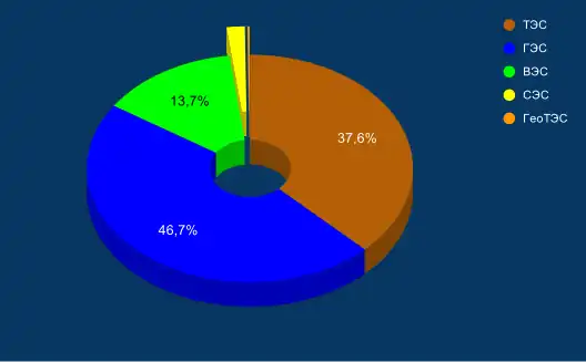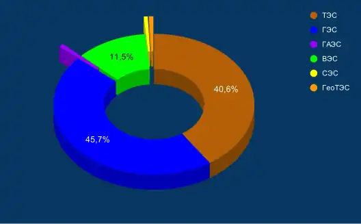 | Доля электроэнергии | -- | 18,83% | 14,37% | 5,70% | 20,18% | 25,66% | 1,09% | 29,54% |