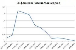 Пик пришёлся на март и апрель 2022 года, когда показатель недельной инфляции достиг 2,2 % и превысил уровень августа 1998 года, но в дальнейшем инфляция сократилась[14][15].