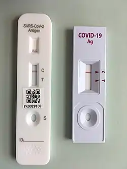 Быстрые тесты на антиген COVID-19 являются одним из наиболее полезных применений этих тестов. Часто называемые тестами бокового потока, они дают правительствам стран мира ряд преимуществ. Они быстро внедряются с минимальной подготовкой, предлагают значительные преимущества по стоимости, стоят значительно меньше существующих форм ПЦР-тестирования и дают пользователям результат в течение 5-30 минут. Быстрые антигенные тесты нашли свое лучшее применение в рамках массового тестирования или скрининга всего населения.[2] Они успешны в этих подходах, потому что в дополнение к вышеупомянутым преимуществам они выявляют людей, которые наиболее заразны и потенциально могут распространить вирус среди большого количества других людей.[3] Это несколько отличается от других форм COVID-19, таких как ПЦР, которые обычно рассматриваются как полезный тест для отдельных людей.
