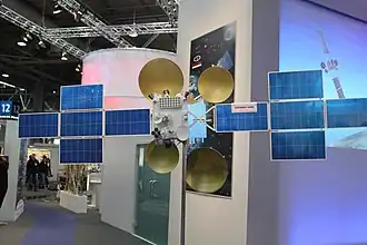 15 декабря 2014 | 90° в. д. | 3270 | 10.6 | 15 | РН «Протон» с Бриз-М | 17 по 72 МГц С-диапазона, 18 по 72 МГц и 18 по 36 МГц Ku-диапазона. | Предоставления телекоммуникационных услуг в России и странах СНГ. Статус: В эксплуатации. | |