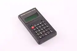 Электроника Б3-35 — советский инженерный 8-разрядный карманный калькулятор. Выпускался с 1979 года и продавался за 105 рублей, после 1981 года - за 65 руб. Предназначен для выполнения инженерных расчётов в хозяйстве и быту. Калькулятор выполняет четыре арифметические операции, вычисление натуральных и десятичных логарифмов и антилогарифмов, прямых и обратных тригонометрических функций, обратных величин, факториала, вычисления с двухуровневыми скобками, возведение в степень, извлечение корней и операции (умножение и деление числа в памяти[1][2]) с памятью. Прототипом являлся Hanimex ESR Master.[3]