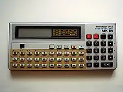 Электроника МК-85 — советский программируемый калькулятор (микрокомпьютер) на базе 16-битного процессора со встроенным интерпретатором языка Бейсик. Разрабатывался в НИИТТ, главный конструктор — Л. Минкин, заместитель ГК — Ю. Отрохов, разработчики — С. Ермаков, О. Семичастнов, Б. Кротков, А. Подоров, В. Гладков и др.[1] Серийно выпускался заводом «Ангстрем», г. Зеленоград, с 1986 по 2000 год, было произведено более 150 тыс. калькуляторов различных модификаций[1].