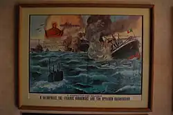 В последних кадрах ставшего известным в войну небольшого пропагандистского мультипликационного фильма С. Поленакиса муза Истории выбрасывает Муссолини в море, он идёт на дно и садится задом на мачту крейсера «Элли»[7].