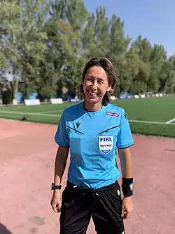 В 2021 году стала первой женщиной-судьей, обслуживающей соревнования высшей лиги страны по футболу Казахстанской премьер-лиги. Первый матч: «Жетысу» — «Кызыл-Жар».