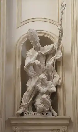 Святой Эмигдий (Emygdius), или Эмидий (Emidius) был язычником из Трира, Германия, обращённым в христианство. Прибыв в Рим, он исцелил парализованную дочь Грациана (Gratianus), приютившего святого в своём доме на острове Тиберина. Впоследствии семья Грациана приняла крещение.