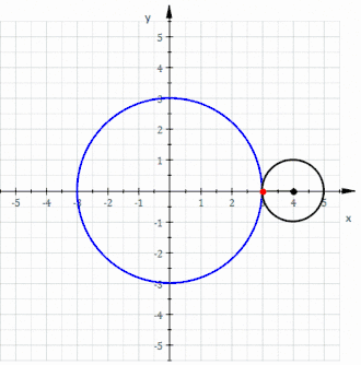 - Пусть центр неподвижной окружности , центр второй окружности . Очевидно, что