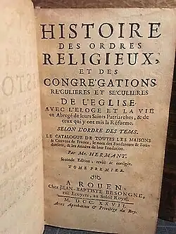 - «Histoire des ordres militaires de l’Eglise et des ordres de chevalerie» (1698)