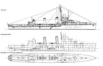 | Минно-торпедное вооружение | 3×3 533-мм ТА 1-Н (9 торпед), морские мины КБ-3 |