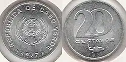 Первые монеты независимого Кабо-Верде номиналом 20, 50 сентаво и 1, 2,5, 10, 20 и 50 эскудо были введены в обращение в 1977 году вместе с банкнотами I серии и оставались законным средством платежа до 1995 года[2], хотя монеты в сентаво исчезли из обращения вследствие инфляции гораздо раньше.