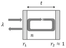 Чтобы показать этот эффект, мы предполагаем реально и , где является отражательной способностью первой поверхности. Определим эффективный фазовый сдвиг через