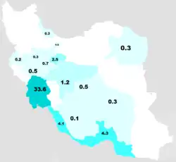 Иран является второй в мире страной по числу проживающих курдов — самого крупного индоевропейского народа, не имеющего своё государство. Их численность оценивается в пределах 9-12 млн чел. Основной район расселения курдов — Иранский Курдистан, состоящий из множества останов (регионов) Ирана, граничащих с Азербайджаном, Турцией и Ираком.