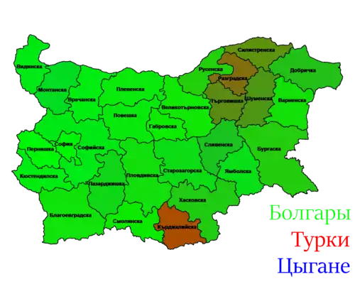 - Этнический состав населения областей Болгарии по итогам переписи населения 2011 года[1]