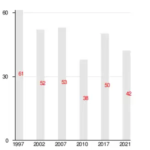 | 1997 | 2002[9] | 2007[10] | 2010[11] | 2017[1] |