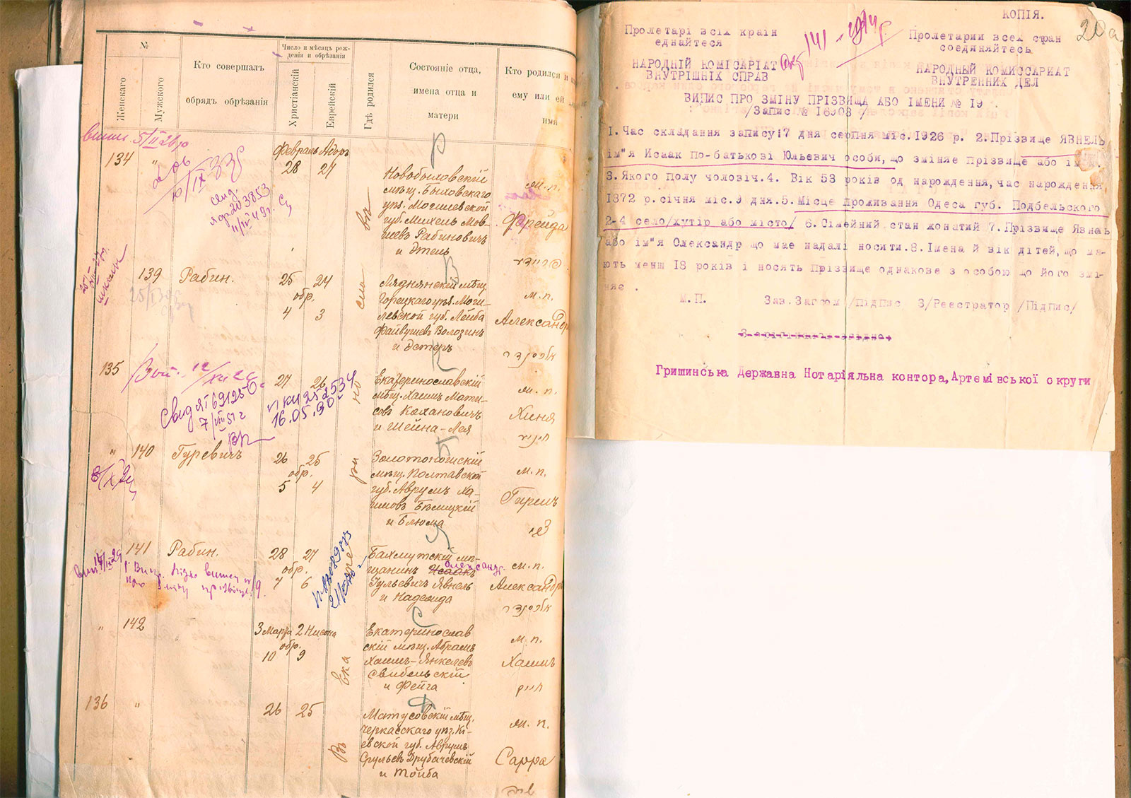 - ↑ Запись о рождении 28 февраля и обрезании 7 марта 1915 года в канцелярии екатеринославского городового раввина: здесь же приписка из одесского ЗАГСа от 19 августа 1926 года об изменении отчества с Исаакович на Александрович.