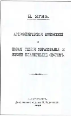 - Ягн, Н. Астрофизические положения и новая теория образования и жизни планетных систем. СПб.: 1888 (ГПИБ. Фонд: КХ, Шифр: Г 34 4/107, Инв.№: 1354525)