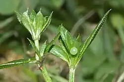 Гусеницы развиваются на подмаренниках и звездчатках: первое поколение — с сентября до октября (зимуют куколка или имаго), второе поколение — с июня до августа.