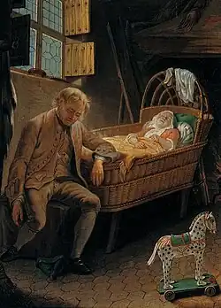 Картина Ивана Якимова «Мужчина у колыбели» (начало 1770-х годов) находится в собрании Третьяковской галереи[5]. Она является фрагментом композиции «Семейственная сцена», находившейся в собрании «Русского музеума Павла Свиньина». Копия этой композиции была исполнена Н. Г. Чернецовым в альбоме «Собраше Отличныхъ Произведенш Россшскихъ Художниковъ и любопытныхъ Отечественныхъ Древностей Принадлежащее Павлу Свиньину. Начато в 1819-мъ гьду». Это полотно было разрезано пополам после распродажи коллекции П. П. Свиньина, правая часть композиции была утрачена[1].