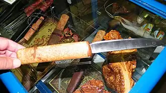 - Имеется ещё вариация, называемая «батыйа» — меч или мачете, длиной от 500 мм, с изогнутым клинком с такой же асимметричной заточкой, в основном, использовали как пешню и для охоты на медведей[3].