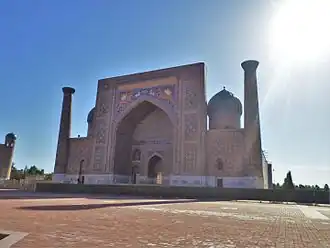 - ↑ Как переводятся надписи на памятниках Самарканда: Регистан, Гур Эмир, медресе Улугбека, Биби Ханым, Шохи Зинда, Шахи Зинда. Дата обращения: 26 июля 2011. Архивировано 8 августа 2011 года.