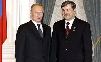 ![]() Руслан Ямадаев после вручения медали «Золотая звезда» Героя Российской Федерации в 2004 году. | |