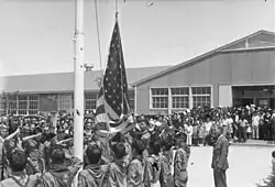 В первые годы Второй мировой войны американцы японского происхождения были насильственно переселены из своих домов в лагеря для интернированных из-за опасений об их возможном пособничестве Японии. При этом многие из молодых нисэй ― детей японских иммигрантов и урождённых граждан США, были призваны на службу в армию США или вызвались служить добровольно. Американцы японского происхождения служили во всех ветвях вооруженных сил Соединённых Штатов, а также в торговом флоте[1].