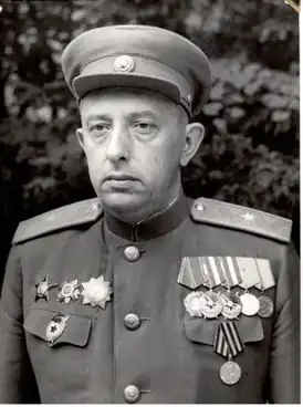 - 1 2 3 4 Калашников К. А., Додонов И. Ю. Высший командный состав Вооруженных сил СССР в послевоенный период. Справочные материалы (1945—1975 гг.). Командный состав танковых войск. — Усть-Каменогорск: Медиа-Альянс, 2017. — Т. 3. — 652 с. — ISBN 978-601-7887-15-5.