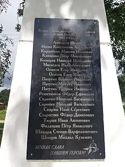 Памятник воинам погибшим в годы Великой Отечественной войны. Расположен: ул. Зорге (центр села). Дата установки: 1984 год. Памятник находится в оперативном управлении муниципального учреждения культуры «Методический центр».