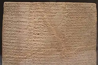 ![]() Глиняный диск Яхдун-Лима с надписью, посвящённой его походу к Средиземному морю и победе над 7 вождями ханаитов. (Лувр, № AO 18236) | |