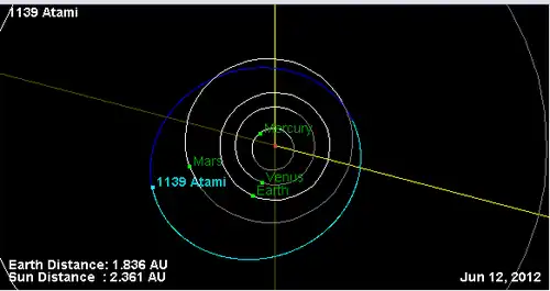 - Орбита астероида Атами и его положение в Солнечной системе