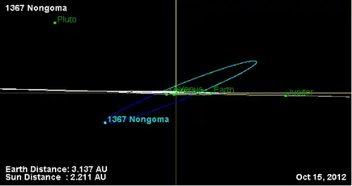 - Орбита астероида Нонгома и его положение в Солнечной системе